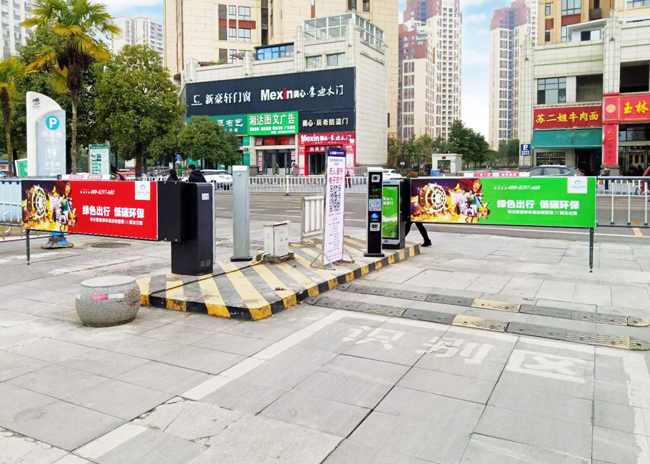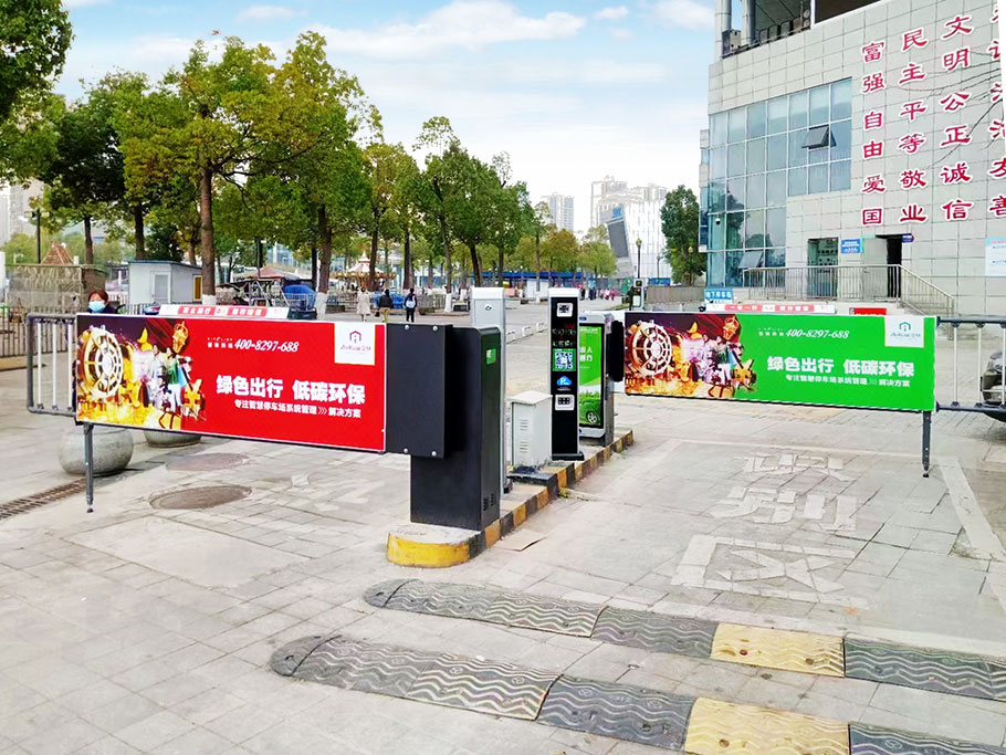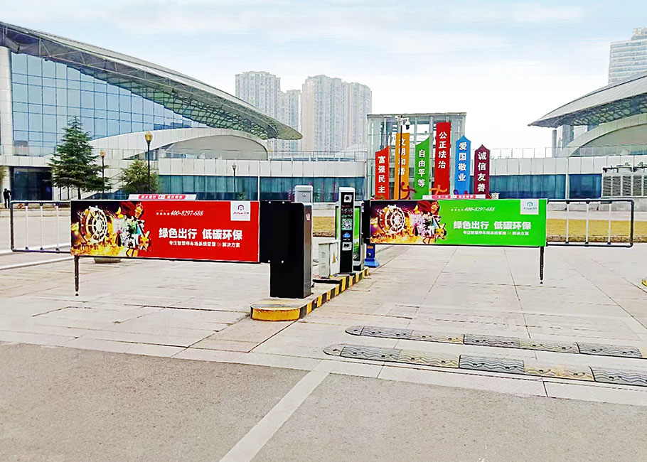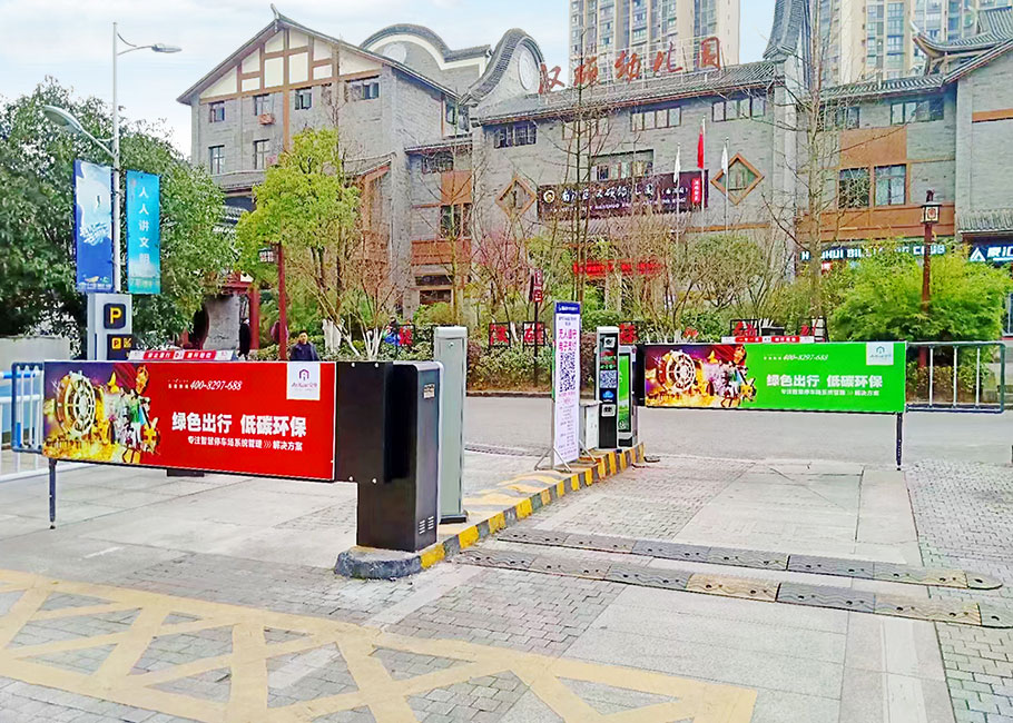 D203卡布燈箱廣告道閘+P815SP車牌識別——四川宜賓南溪文體中心停車場4進4出案例