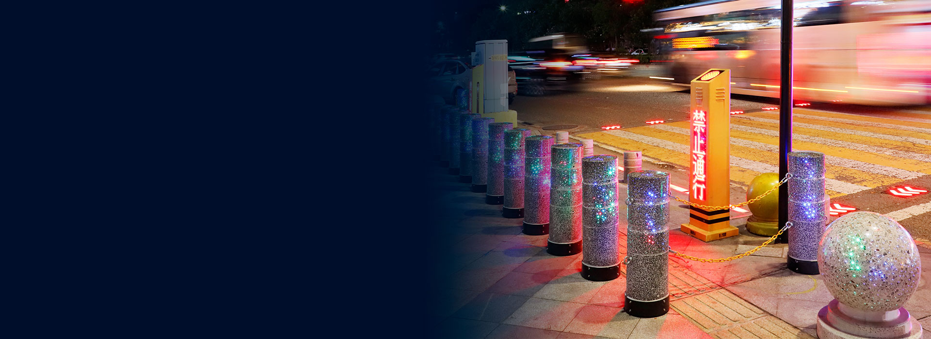行車路口與發光障礙球、防撞柱有效結合,警示效果好,有助于行人與車輛的安全,具有獨特的亮化效果